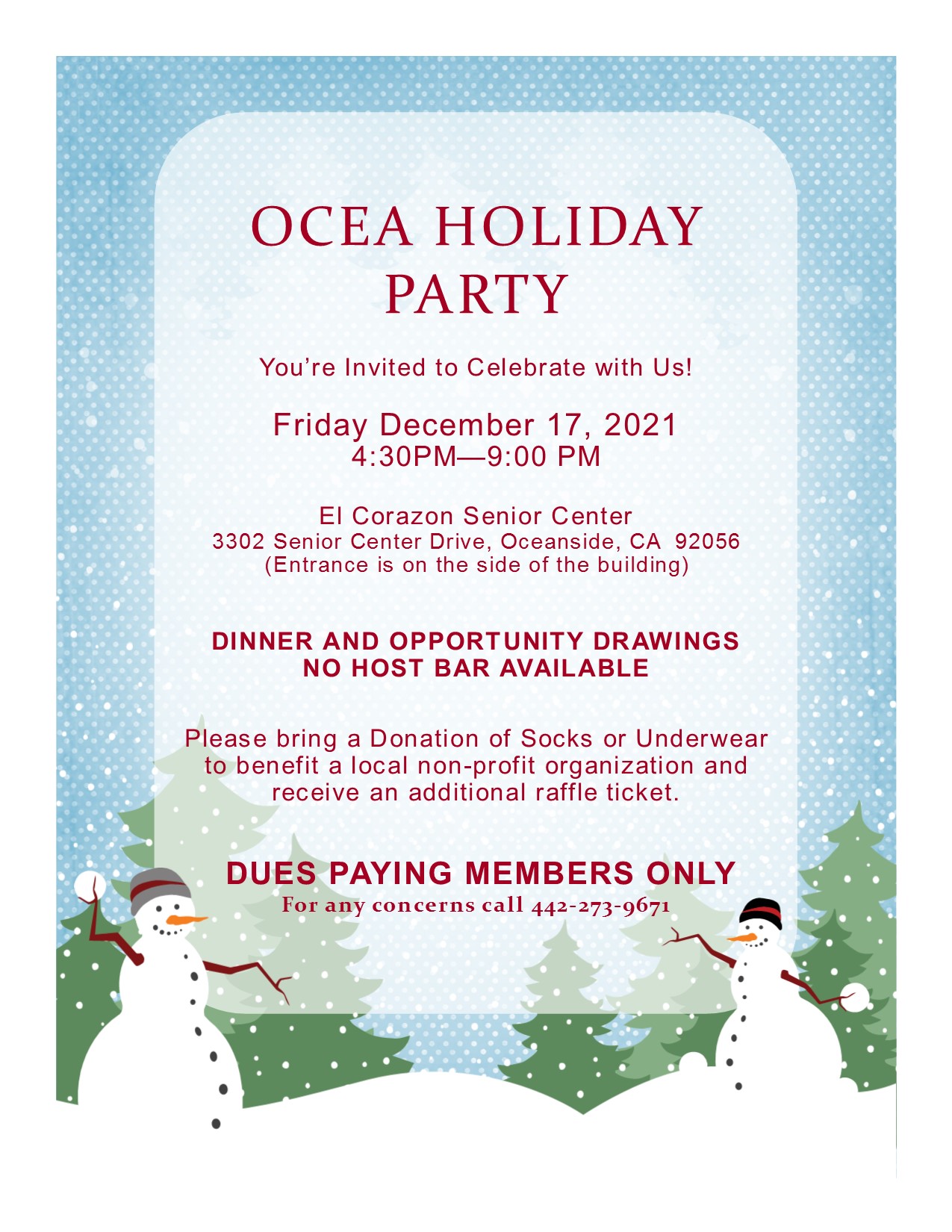 Posted on December 5, 2021 Holiday Party -Friday December 17, 2021 Share this: Click to share on X (Opens in new window) X Click to share on Facebook (Opens in new window) Facebook Like Loading... Related